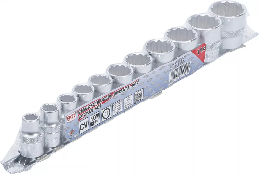 BGS technic 11 részes dugókulcs fej készlet, 3/8", 12 pontos, col méretek, 5/16" - 7/8" (BGS 9112)