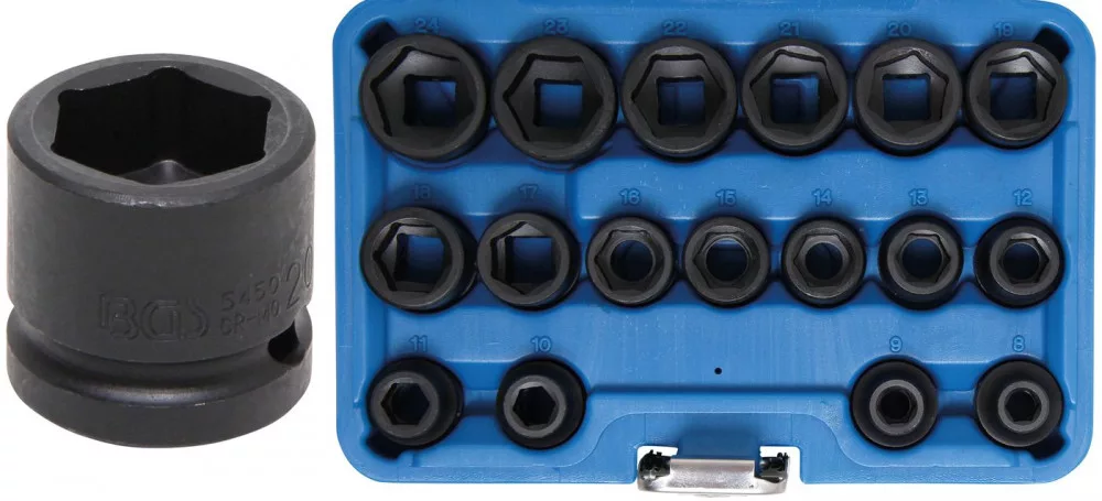 BGS technic 17 részes levegős dugókulcs fej készlet, 1/2 ", extra lapos, 8-24 mm (BGS 9286)
