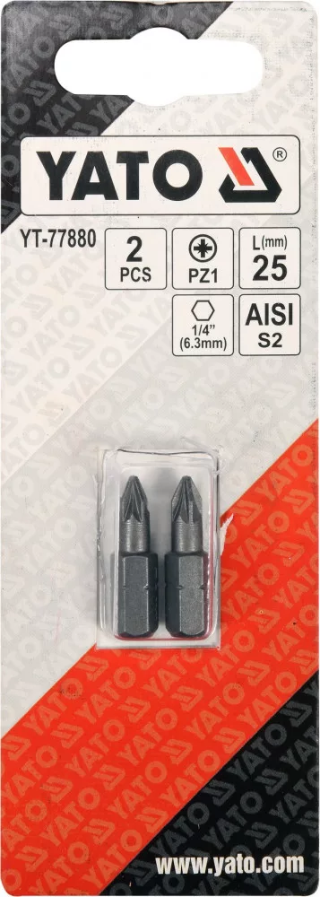 Precíziós bitek csavarok vagy csavarok meghúzásához és meglazításához YATO YT-77880. Maratott profil, homokfúvott felület, korróziógátló bevonattal védve. Hidegen kovácsolt AISI S2 acélból.