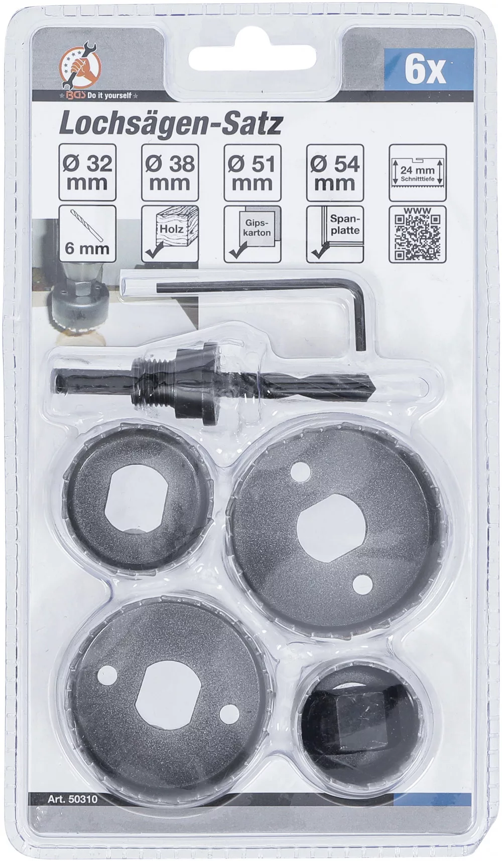 BGS DIY 6 részes lyukfűrész készlet, 32 - 38 - 51 - 54 mm (BGS 50310)