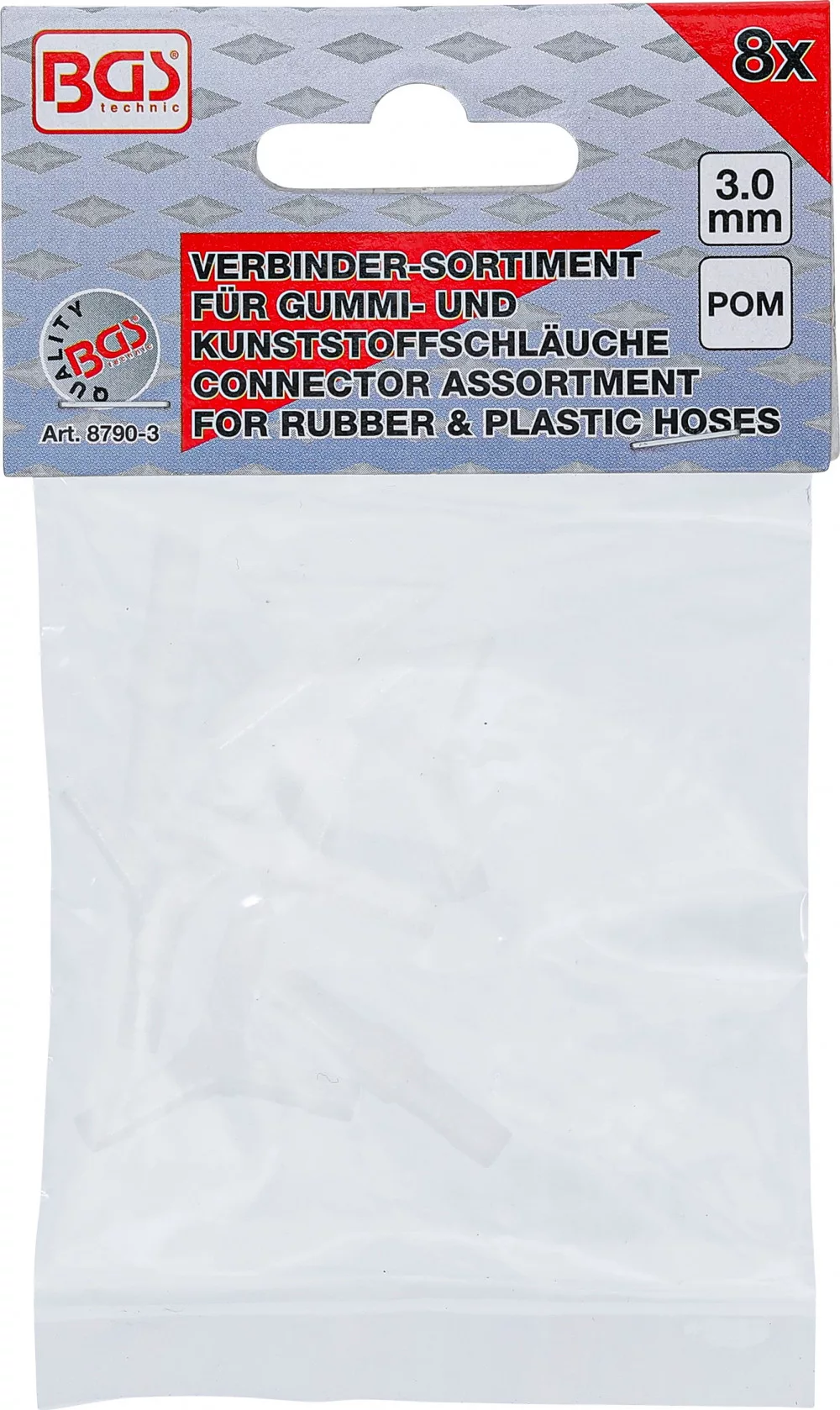BGS technic 8 darabos csatlakozó készlet, 3mm belső átmérőjű gumi és műanyag csövekhez (BGS 8790-3)