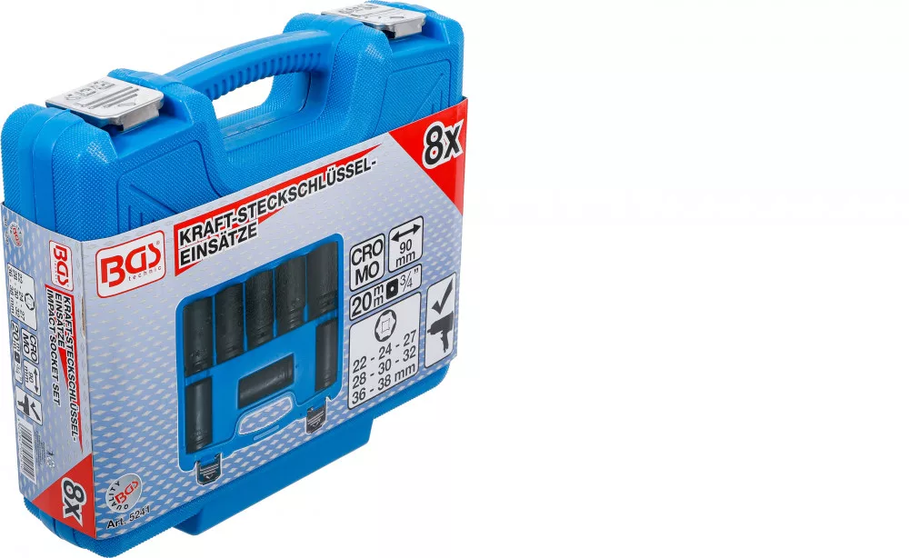 Levegős dugókulcs, hossza 90 mm, 20 mm (3/4"), kulcsnyílás: 38 mm