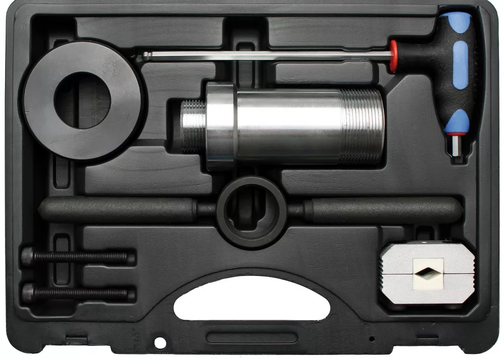 a szerszámkészlet lehetővé teszi a dugattyúrúd teljes kihúzását a rugós ütköző rugóhatása ellenében