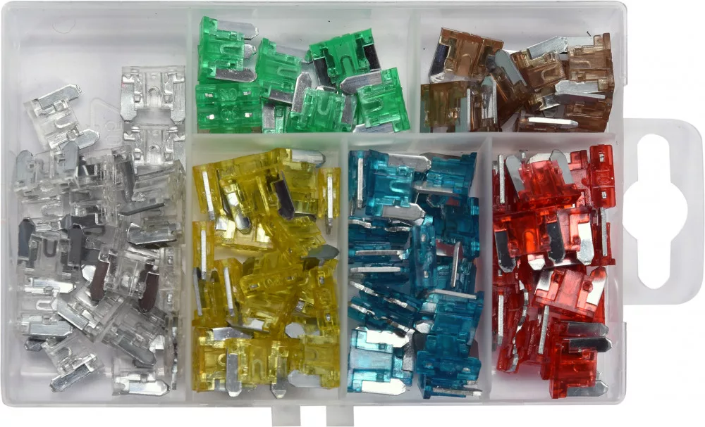 Biztosítékkészletek, amelyek megvédik a gépkocsik elektromos berendezéseit a túlzott áram okozta károktól. Széles körben használják az autóiparban. Praktikus tokokba csomagolva.