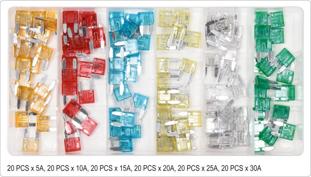 Biztosítékkészletek, amelyek megvédik a gépkocsik elektromos berendezéseit a túlzott áram okozta károktól. Széles körben használják az autóiparban. Praktikus tokokba csomagolva.