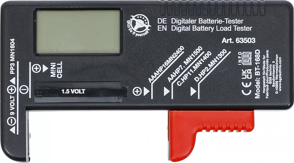 BGS DIY Digitális akkuvizsgáló | 1,5 V / 9 V (63503)