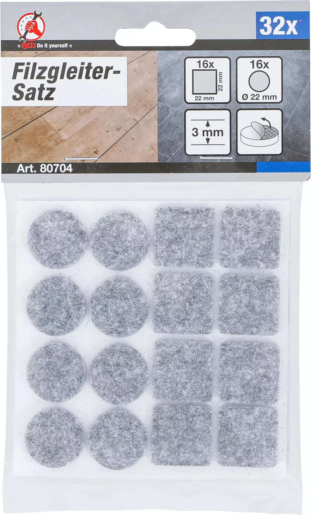 BGS DIY Filc alátét készlet | szürke-melírozott | 32 darabos (80704)