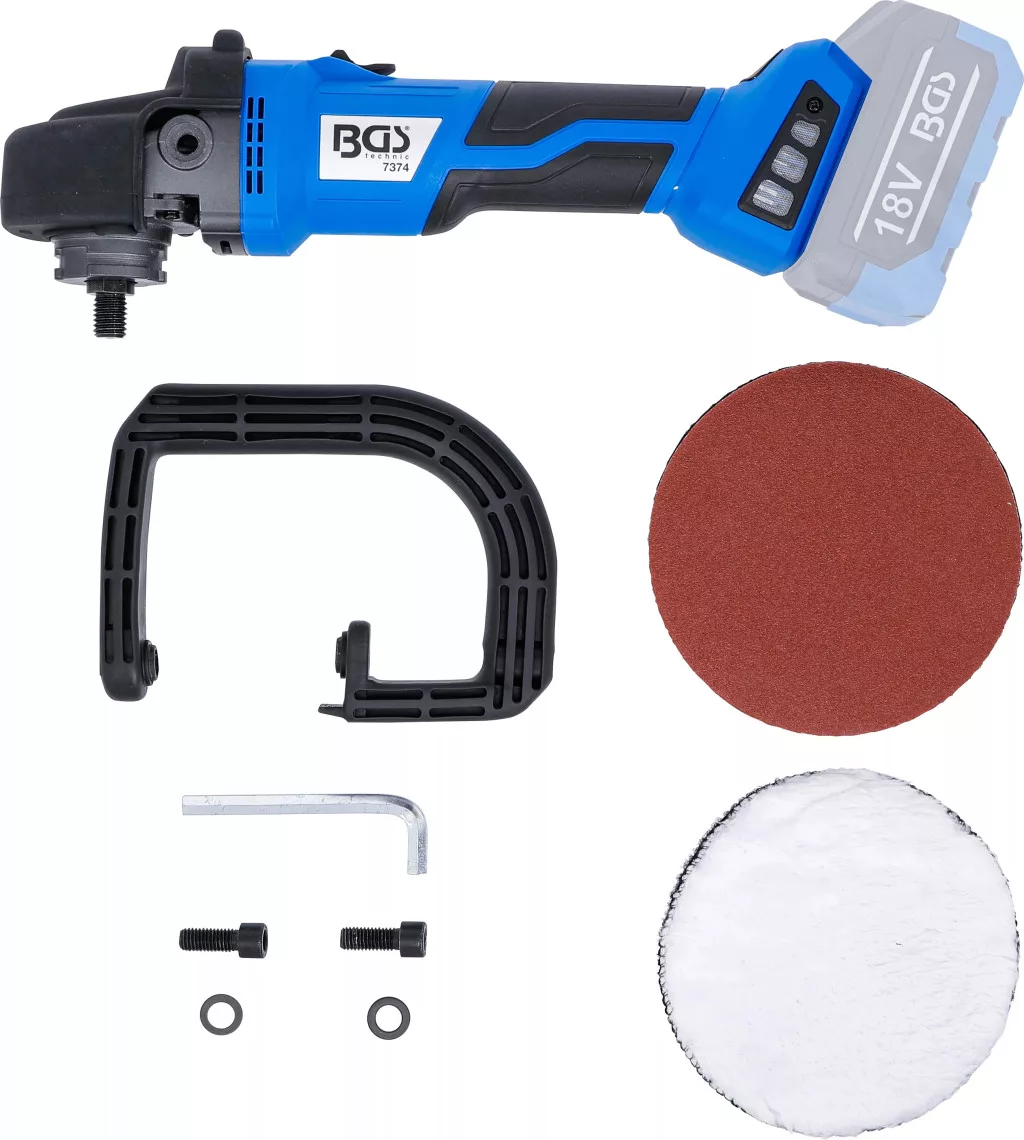 BGS technic Akkumulátoros polírozó és köszörűgép készlet | szénkefe nélküli | 18 V | akkumulátorral és gyorstöltővel (7395)