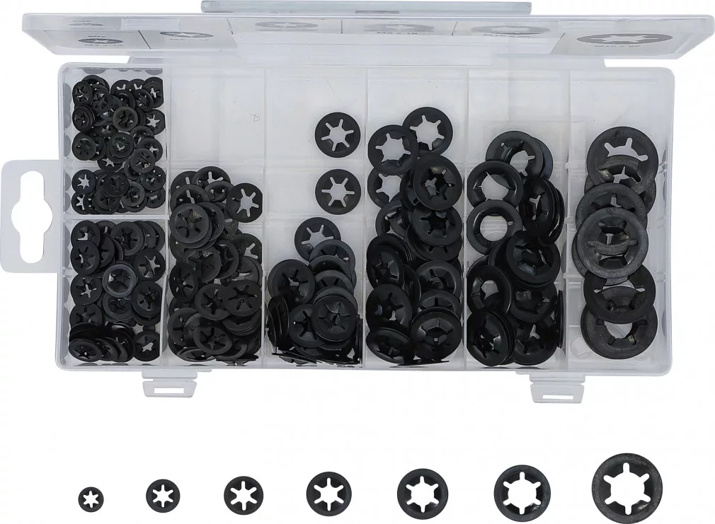 BGS technic Feszítőtárcsák / rögzítő alátét választék | M3 - M12 | 340 darabos (74414)