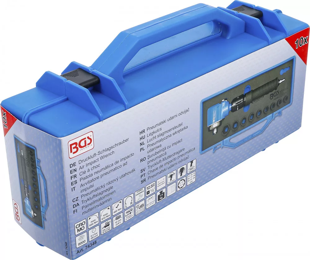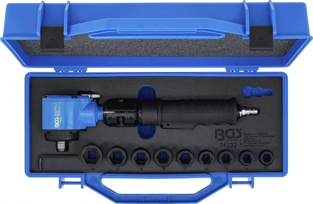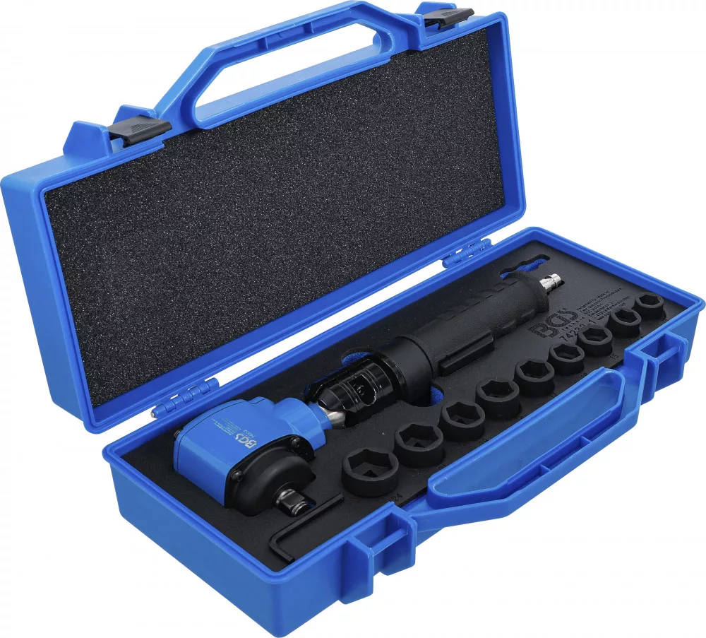 Meghajtott profil: Külső négyszögletű kulcsnyílású elem$Meghajtott profil méret, hüvelykmérték: 1/2 "$Meghajtott profil méret, metrikus: 12,5 mm$Működő nyomaték: 450 Nm$Munka nyomaték max.: 610 Nm$Üzemi nyomás: 6,2 bar$Bruttó súly: 3090 g$Forgásirány: Jobb/bal oldalt$Fordulatszám max.: 8000 Ford/min$Sűrítettlevegő-csatlakozó: 1/4 "$Javasolt belső tömlőátmérő: 10 mm$Kioldási nyomaték max.: 650 Nm$Levegőfelhasználás: 226 l/min$Hangnyomásszint max.: 87,62 dB(A)$Hangteljesítményszint max.: 97,78 dB(A)