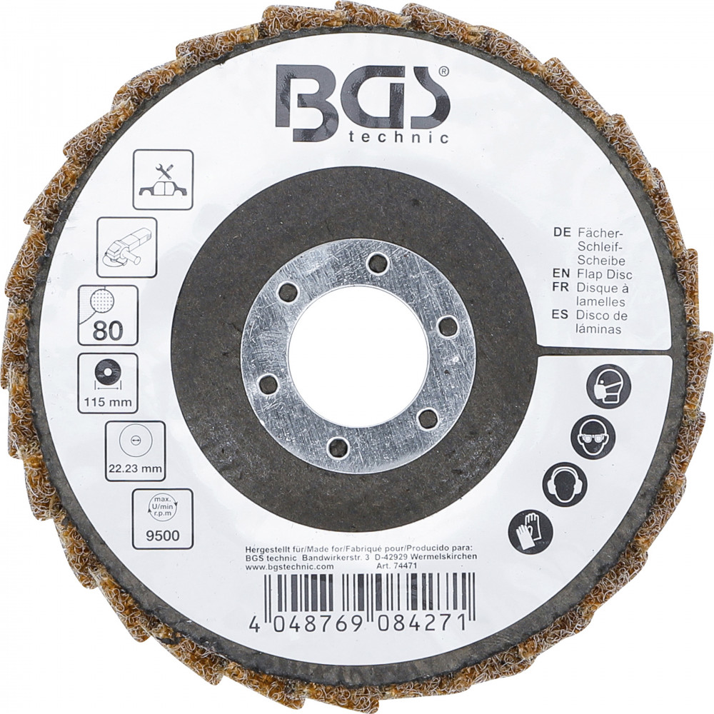 BGS technic Legyező alakú csiszolótárcsa | Flíz | Ø 115 mm | 80-as szemcsefinomság (BGS 74471)