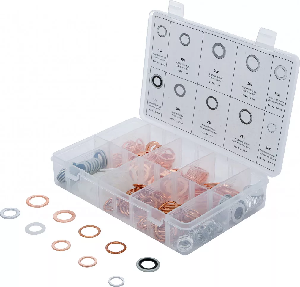 BGS technic Tömítőgyűrű-készlet | Vörösréz, Aluminium, Nejlon | 250 darabos (85225)