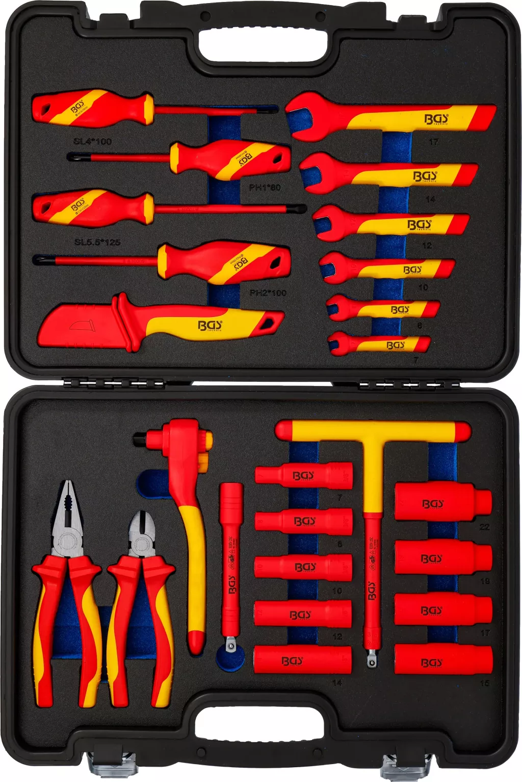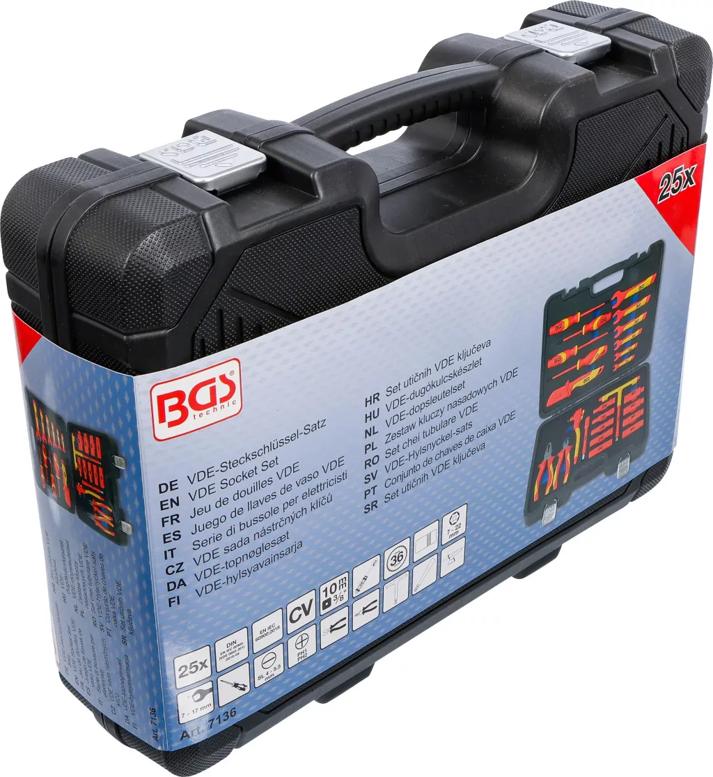 BGS technic Villanyszerelő szigetelt VDE dugókulcskészlet | 10 mm (3/8") | 25 darabos (7136)