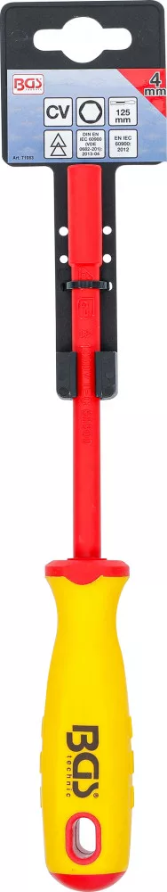 BGS technic VDE dugókulcsos csavarhúzó, hatszög, 4 mm, Pengehossz 125 mm (BGS 71083)