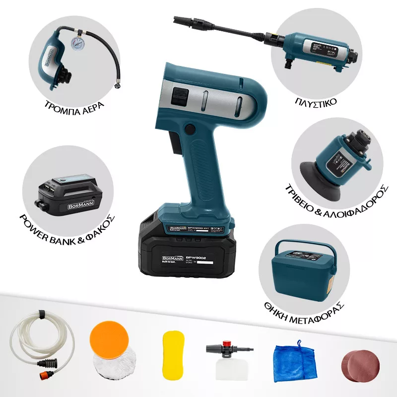 BORMANN 6 AZ 1-BEN AKKUMULÁTOROS MOSÓ 22BAR , POLÍROZÓ , CSISZOLÓ , SZIVATTYÚ , POWER BANK, LÁMPA (BPW9000)