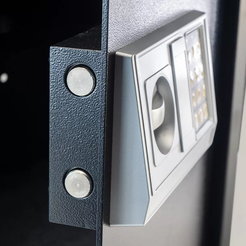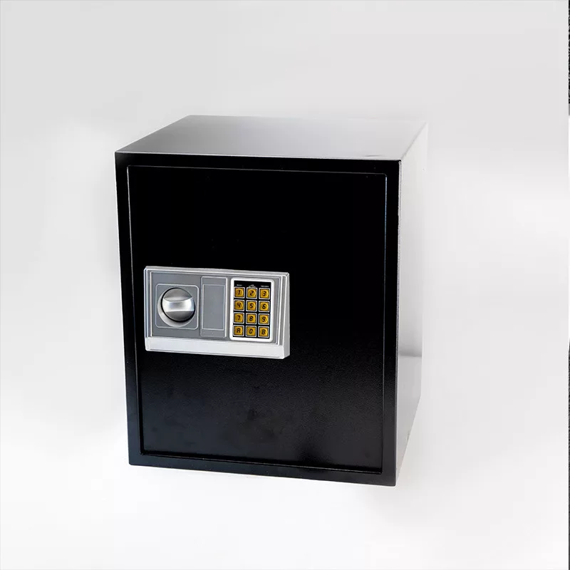 Digitális biztonsági széf elektronikus zárral és kulccsal. Falra, szekrényre vagy padlóra szerelhető.