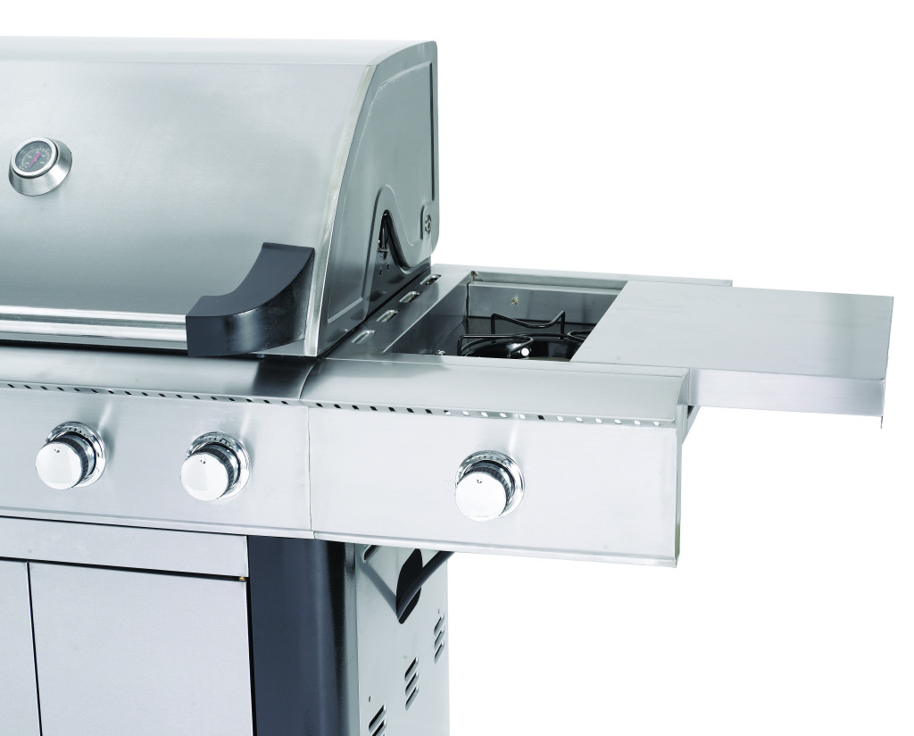 Tartozékok: 2 db rozsdamentes acél főzőrács és 1 db rozsdamentes acél melegítőrács, kivehető zsírfogó tálca