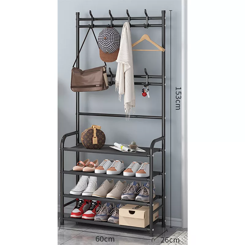 BORMANN ELITE ELŐSZOBA ÁLLVÁNY FOGASSAL ÉS 4 DB CIPŐTARTÓ POLCCAL, 60x26x153cm FÉM KERETTEL (BPC2250)