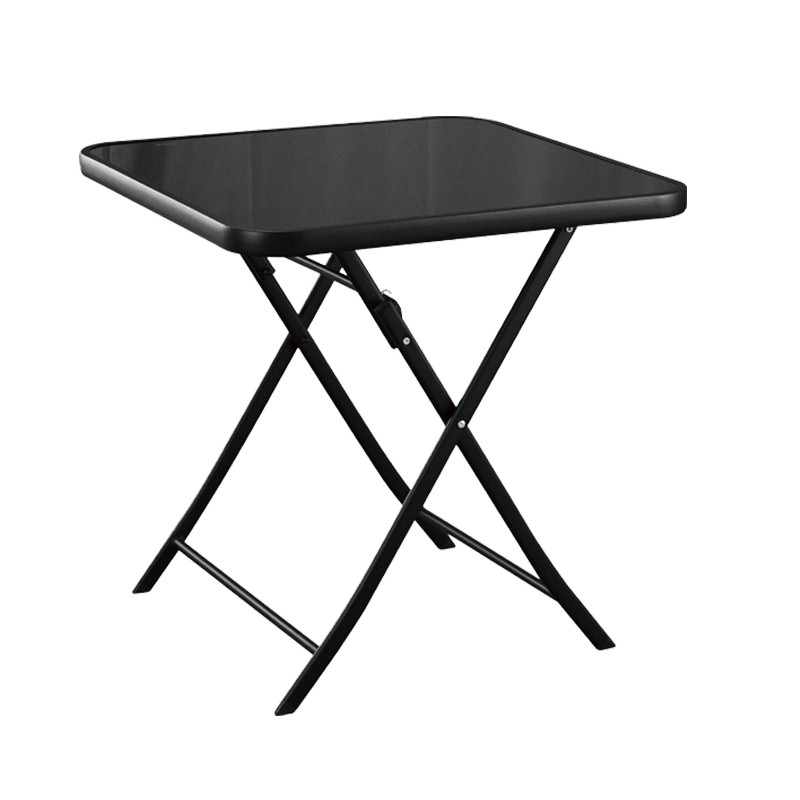 BORMANN KÜLTÉRI ÖSSZEHAJTHATÓ ASZTAL, SZÜRKE FÉM KERETES ÉS FEKETE ÜVEGLAP, 70x70x72cm (BSP1158)