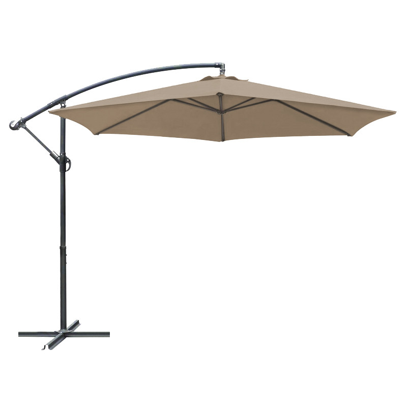 Kör alakú és fémkeretes, ami stabillá és rendkívül ellenállóvá teszi a szabadtéri éghajlati viszonyokkal szemben, így alkalmas kertjében vagy teraszán való használatra. Banán típusú rúddal és padlóállvánnyal lóg, ami praktikussá teszi, mivel a törzs a szélén van, így nagy használható teret biztosít az ernyő alatt.