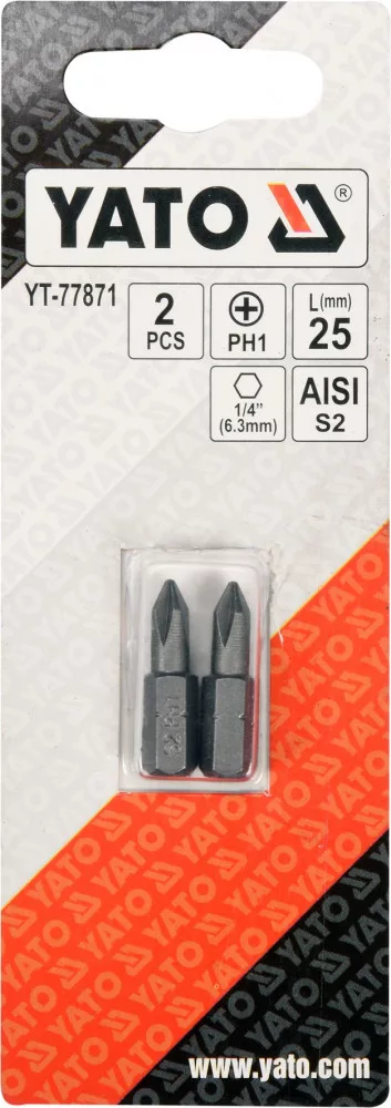 Precíziós bitek csavarok vagy csavarok meghúzásához és meglazításához YATO YT-77871. Maratott profil, homokfúvott felület, korróziógátló bevonattal védve. Hidegen kovácsolt AISI S2 acélból.
