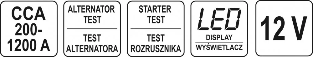Lehetővé teszi a személygépkocsik, kisteherautók és motorkerékpárok 12 V-os akkumulátorainak vizsgálatát, valamint az indítórendszer értékelését.