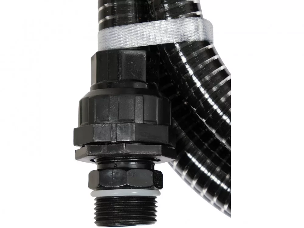 Rugalmas szívótömlő szivattyúkhoz és hidroforokhoz, visszacsapó szeleppel és törmelékkosárral.