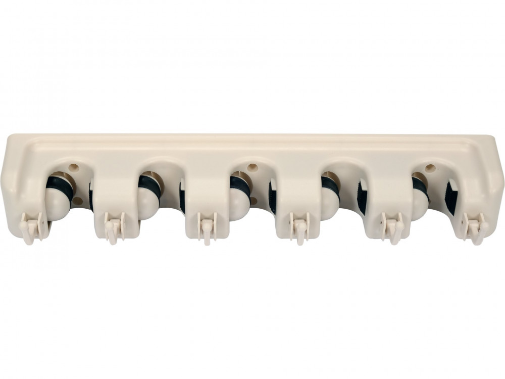 Kiváló megoldás seprűk, lapátok, gereblyék, metszőollók és más kerti szerszámok rendezett tárolására a műhelyben,