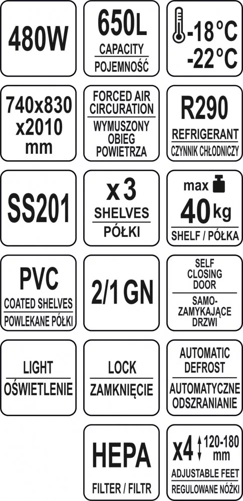 Az ételek tárolására -18~-22°C hőmérséklet-tartományban van tervezve. Tökéletes minden típusú vendéglátóhely számára, mint például éttermek, bárok, pubok vagy pizzériák.