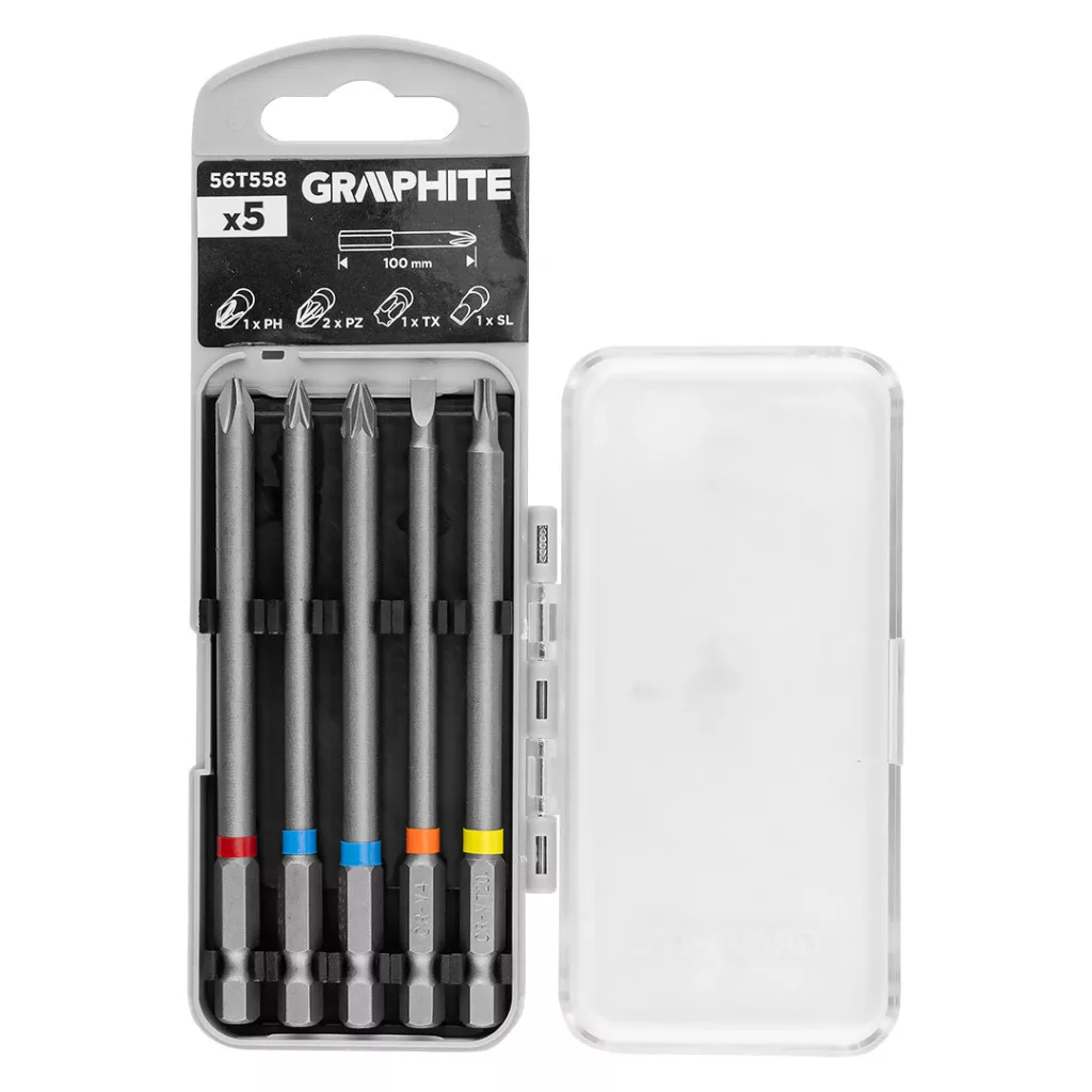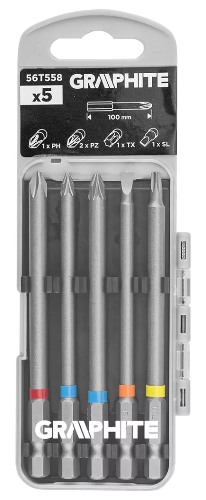 GRAPHITE Csavarhúzó bitkészlet 100mm műanyag tokban, 5db (56T558)