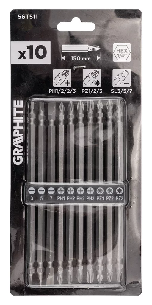 GRAPHITE Csavarhúzó bitkészlet 150mm, 10db (56T511)