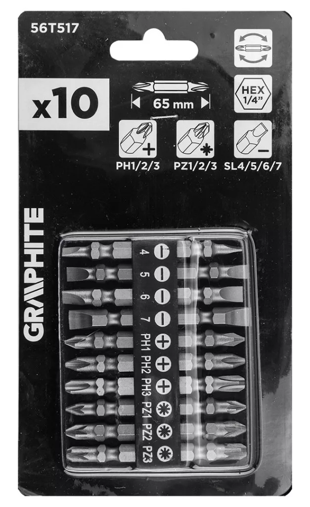 GRAPHITE Csavarhúzó bitkészlet kéthegyű 10db (56T517)