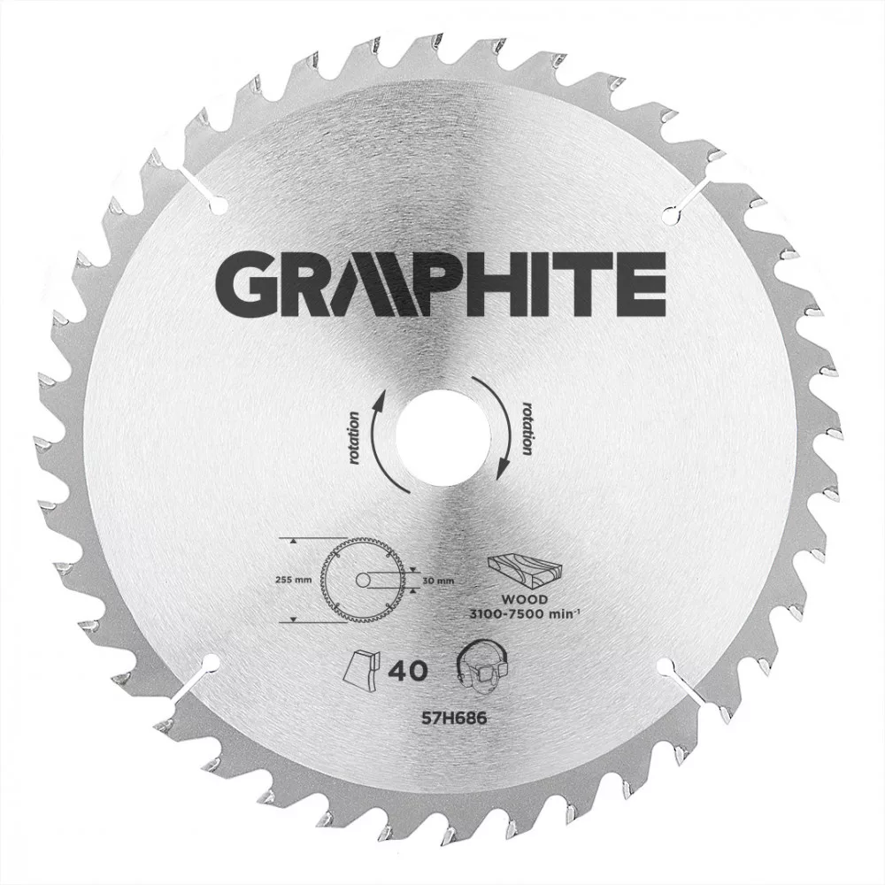 A GRAPHITE keményfém lapkás fűrésztárcsa a hőmérsékletnek és a deformálódásnak igen ellenálló MN65-ös mangán acélötvözetből készül. Az YG6A keményfém lapkás (vídiabetétes) fogazás lehetővé teszi a fa és fa alapú anyagok, mint pl. a rétegelt lemez, a forgácslap vagy az MDF lapok nagyoló vágását. A csomagolásban megtalálható szűkítő gyűrűk lehetővé teszik a fűrésztárcsák alkalmazását a fűrészgép típusok többségéhez.