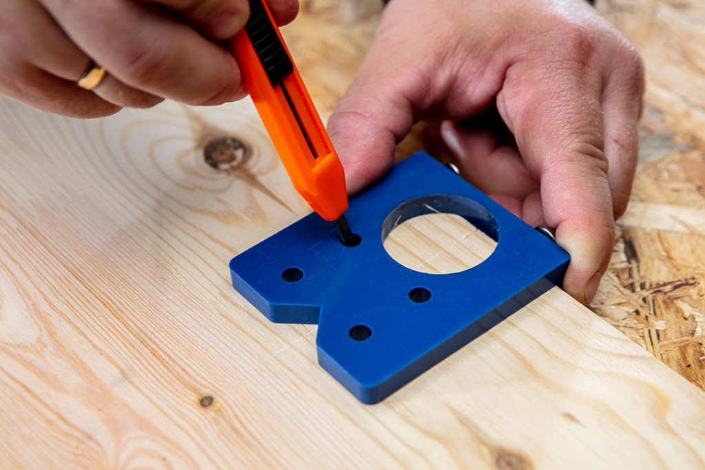 GRAPHITE 57H003 Pántfúró vezetősablonnal, 35mm. Kivetőpánt szerelőkészlet, amelyet körkivágóval, sablonnal, mélységmegállítóval és imbuszkulccsal kínálunk. A fej35 mm átmérőjű és 80 mm hosszú. Legfeljebb 30 mm-es fúrásmélységig. Önközpontosító, és négy pengével - két központi és két külső - szélesebb körű alkalmazást tesz lehetővé. A szár átmérője 8 mm. A készlethez tartozó sablon tartós műanyagból készült. Az eszköz minden fafajta és műanyaggal bevont forgácslap megmunkálására alkalmas. A sablon megkönnyíti a jelölést, a mérést, a fúrást, valamint minimalizálja a fúrószár elcsúszását a feladatok során. Ez a GRAPHITE készlet számos műhelymunkához jól használható.
