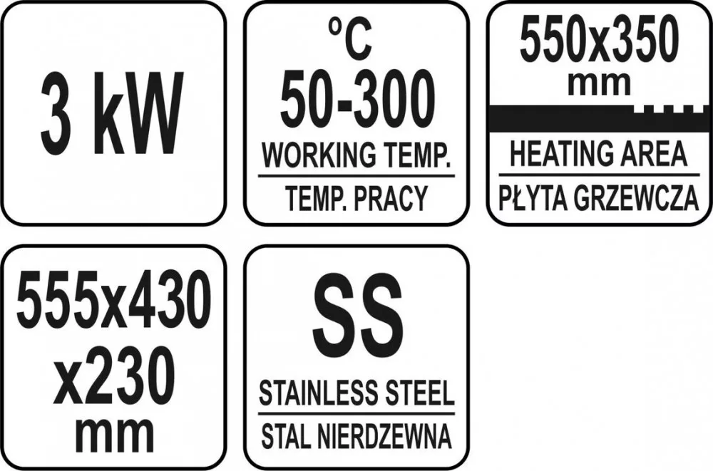 3,0kW teljesítményű grillezőlap YATO YG-04586 márkájú.