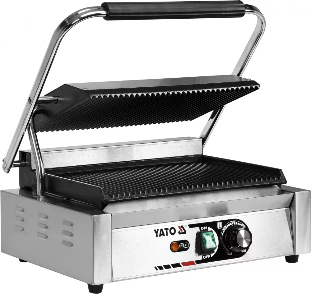 A YATO Grill minden konyha nélkülözhetetlen eszköze. Hamburger, hús, hal, tortilla, pirítós, panini vagy zöldségek gyors elkészítéséhez készült.