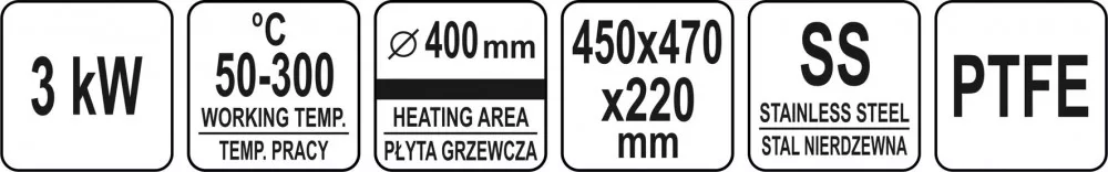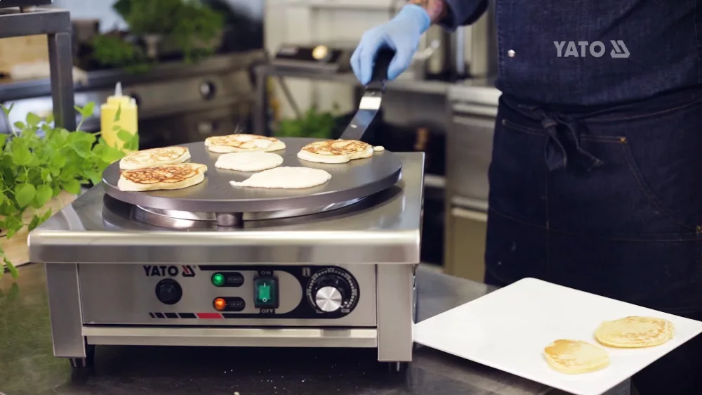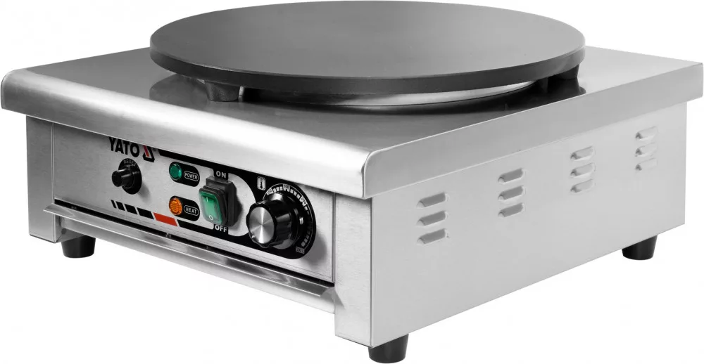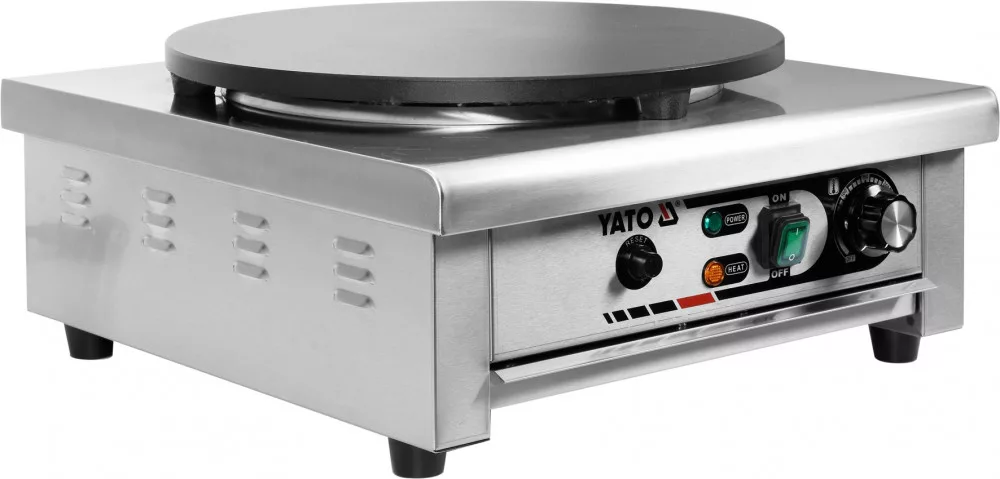Palacsintasütő 3,0 kW teljesítményű és 400 mm átmérőjű YATO YG-04680 márkájú palacsintasütő.
