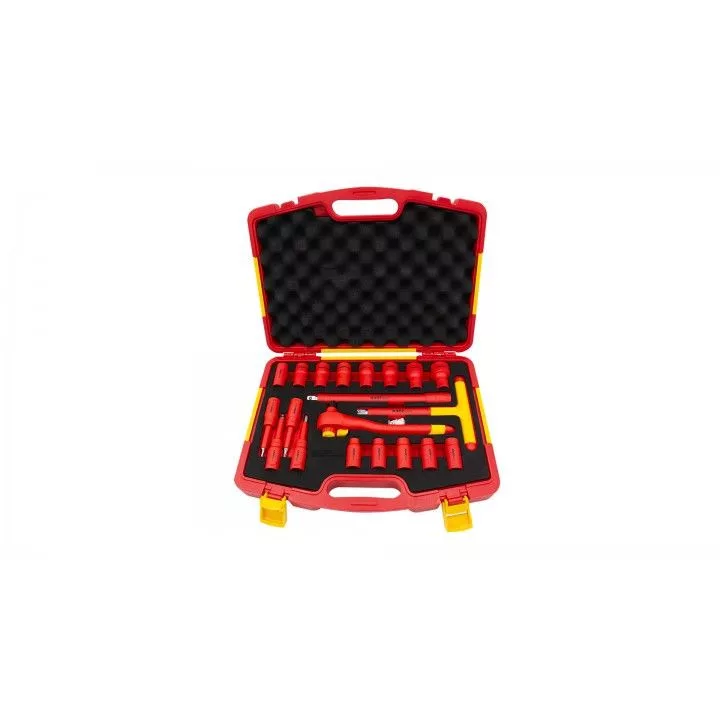 Összetétel: Mennyiség Megnevezés (x13) Dugókulcs: 10mm, 11mm, 12mm, 13mm, 14mm, 16mm, 17mm, 18mm, 19mm, 21mm, 22mm, 24mm, 27mm (x4) Imbuszkulcsok: 4*120mm, 5*120mm, 6*120mm, 8*120mm (x1) Növekedés: 250mm (x1) T-nyél: 200mm (x1) Racsni: 250mm SZABVÁNY: DIN EN 60900 (VDE 0682-201):2019-04
