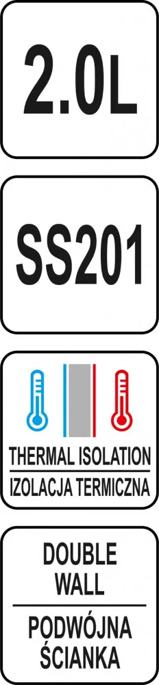 A kettős falak, amelyek között vákuumzóna van, kiváló hőszigetelő tulajdonságokat biztosítanak. Ennek köszönhetően az olyan forró italok, mint a kávé vagy a tea, sok órán át magas hőmérsékleten maradnak.