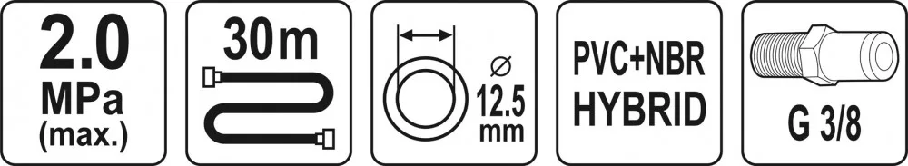 Hibrid sűrített levegős tömlő, amely elengedhetetlen a légszerszámok ellátásához. Hasznos minden műhelyben és gyártóüzemben.