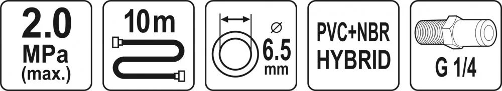 Hibrid sűrített levegős tömlő, amely elengedhetetlen a légszerszámok ellátásához. Hasznos minden műhelyben és gyártóüzemben.