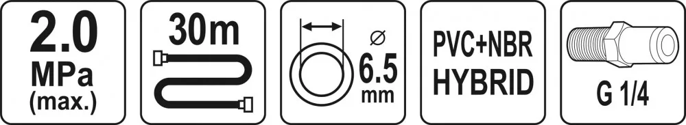 Hibrid sűrített levegős tömlő, amely elengedhetetlen a légszerszámok ellátásához. Hasznos minden műhelyben és gyártóüzemben.