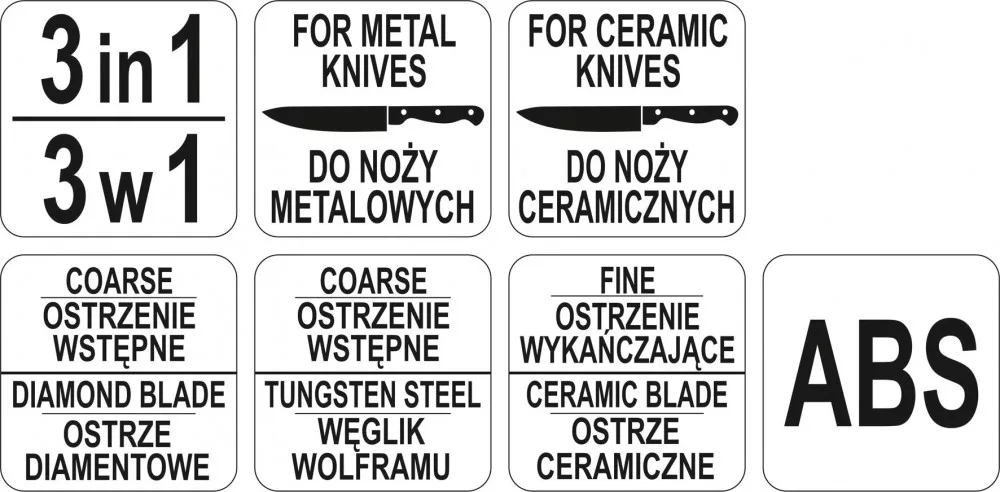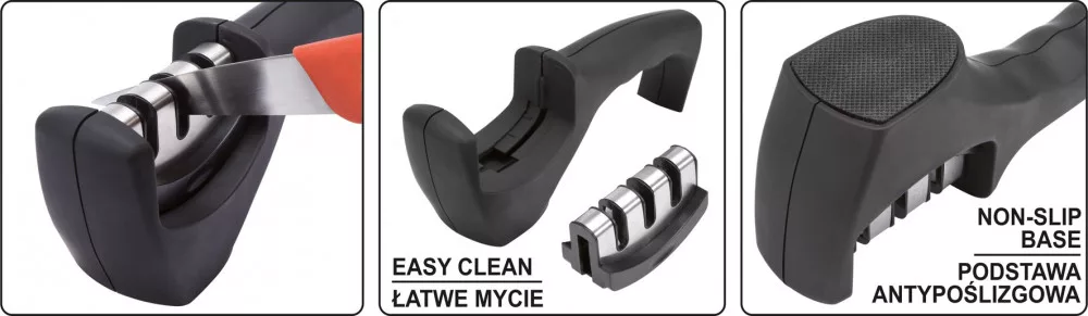 A test tartós és erős ABS-ből készült. A csúszásgátlóval ellátott, kényelmes fogantyú biztosítja az élező kényelmes és biztos fogását munka közben.