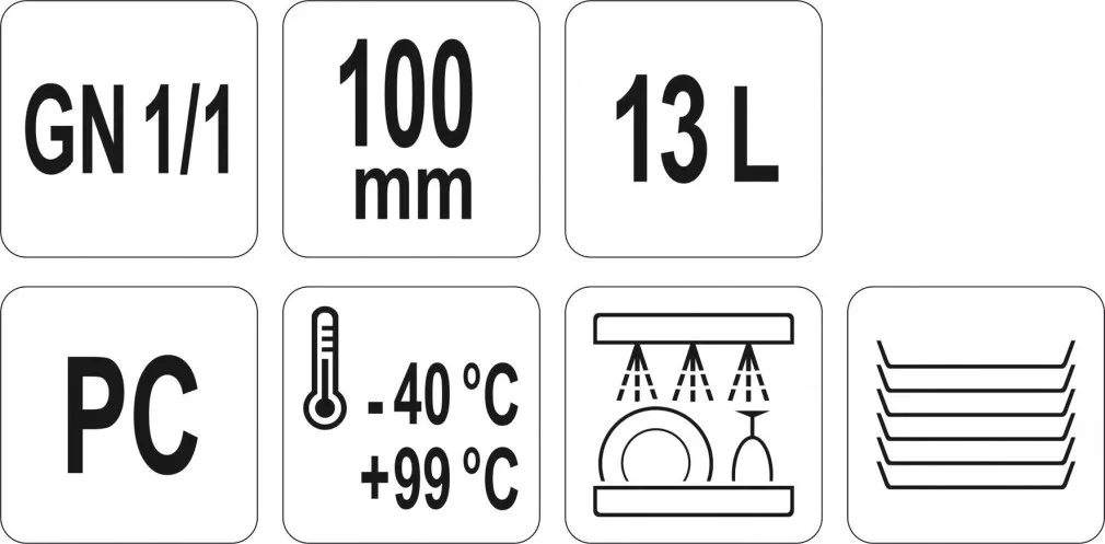 A YATO catering tartályok a legmagasabb minőségű PC polikarbonátból készülnek, amelyet nagyon magas szilárdság és mechanikai sérülésekkel szembeni ellenállás jellemez, biztosítva ezzel a tartós használatot. Professzionális használatra tervezték éttermekben, bárokban vagy tömeges vendéglátóipari létesítményekben. Elsősorban élelmiszerek, fűszerek stb. tárolására használják. Egyedi tulajdonságaiknak köszönhetően -40°C-ig hűtő- vagy fagyasztási körülmények között is használhatók. Ideálisak magasabb hőmérséklettartományban is, akár 99°C-ig, így forró ételek tárolására is alkalmasak. Azonban nem alkalmasak bemar vagy kombi sütőkben való használatra.
