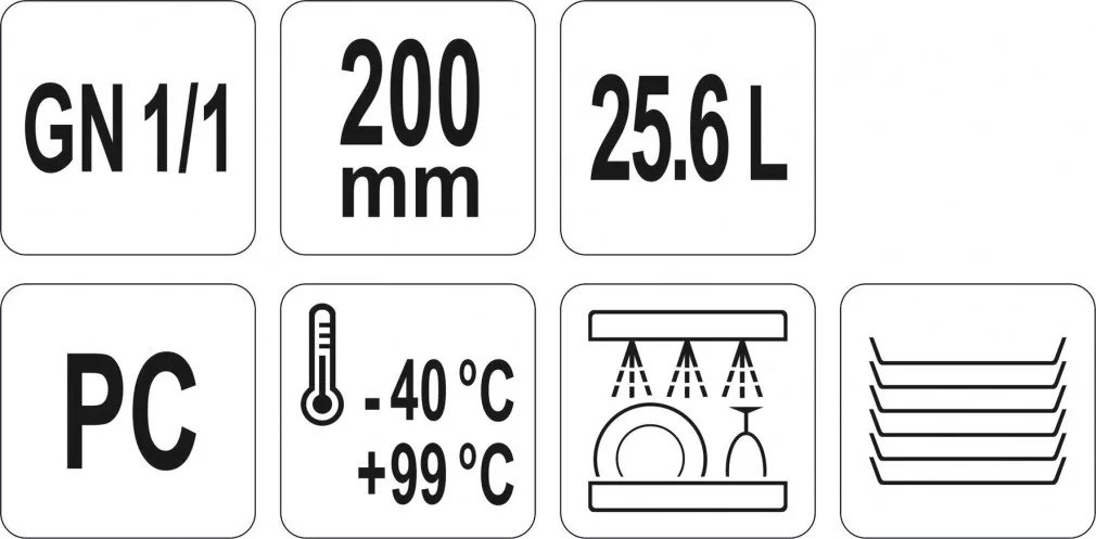 A YATO catering tartályok a legmagasabb minőségű PC polikarbonátból készülnek, amelyet nagyon magas szilárdság és mechanikai sérülésekkel szembeni ellenállás jellemez, biztosítva a hosszú élettartamot. Professzionális használatra tervezték éttermekben, bárokban vagy tömeges vendéglátóipari létesítményekben. Elsősorban élelmiszerek, fűszerek stb. tárolására használják. Egyedi tulajdonságaiknak köszönhetően -40°C-ig hűtő- vagy fagyasztási körülmények között is használhatók. Ideálisak magasabb hőmérséklettartományban is, akár 99°C-ig, így forró ételek tárolására is alkalmasak. Azonban nem alkalmasak bemár vagy kombi sütőkben való használatra.