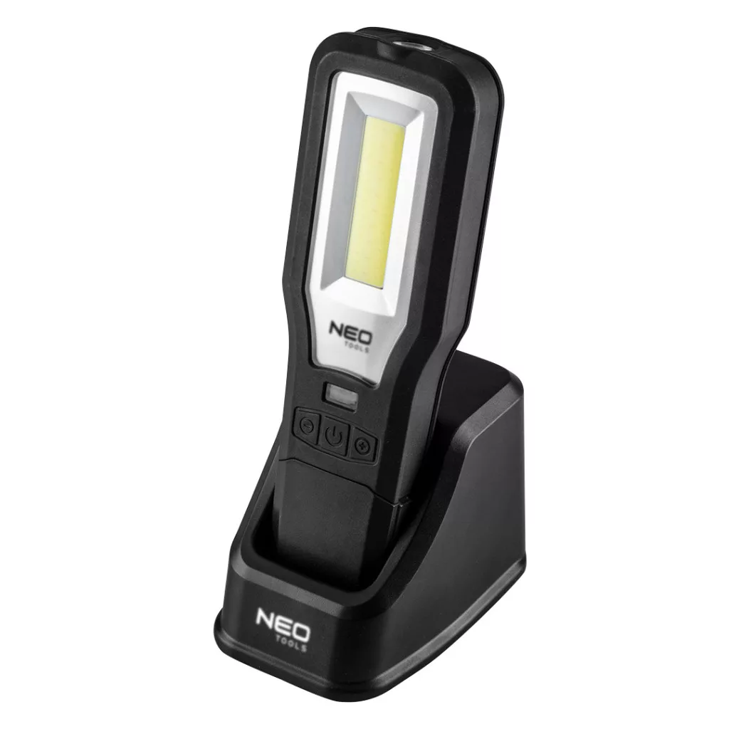 NEO 550 lm COB LED Műhelylámpa + Talp + Töltő. 2:1-ben Kialakítás: A termék egyidejűleg műhelylámpaként (550 lm, 10 W) és zseblámpaként (150 lm, 5 W) használható, így két különböző feladatra is alkalmas. Tartozékok: A készlet tartalmazza a következőket: Akkumulátortöltés-jelző,, Fényerőszabályozó és fényerőszabályozó funkció, Powerbank funkció, Piros fény opció, 360 fokban forgatható fej, Lítium-ion Akkumulátor: A lámpát egy hatékony 3,7 V-os, 2000 mAh lítium-ion akkumulátor táplálja, amely biztosítja a hosszú élettartamot és megbízható működést. Töltési Idő és Üzemidő: Egy teljes töltési ciklus mindössze 3 órát vesz igénybe. Miután feltöltötték, a lámpa akár 180 percig folyamatosan világíthat, így hosszú ideig használható. Tartozékok a Praktikus Használathoz:, 230 V-os töltő,2 db mágnes,Rögzítő kampó,USB C kábel (telefon töltésére is használható),Univerzális Felhasználás: A 2 az 1-ben lámpa ideális minden műhelybe, garázsba és kertbe, és számos körülmény között alkalmazható. A NEO 550 lm COB LED Műhelylámpa + Talp + Töltő egy rendkívül praktikus és sokoldalú megoldás, amely segít a világításban a műhelymunkák során, valamint mobil zseblámpaként szolgál. A különböző funkciók és tartozékok növelik az eszköz sokoldalúságát és alkalmazkodóképességét., , , , ,