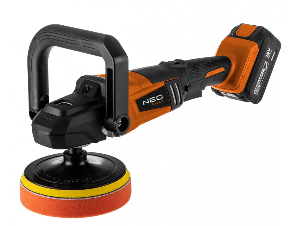 NEO Energy+ 18 V, Li-Ion, akkus polírozógép. M14 150 mm, 800-2300 min-1, akkumulátor nélkül. Autófestékek, lakkfelületek, lámpák, szinesfémek poírozására szolgáló eszköz. Kompatibilis a GRAPHITE Energy+ akkumulátor-rendszerével, és 18 V-os lítium-ion akkumulátorokkal működik (ajánlott kapacitása 4 és 6 Ah). A polírozó robusztus kefe nélküli motorral van felszerelve. 6 sebességfokozatot tartalmaz, 800 és 2300 fordulat/perc között. Ennek a modellnek a tárcsaátmérője 150 mm, a rögzítési menet pedig M14-es. A termék hossza - 420 mm. A polírozó 3 párnát tartalmaz. A polírozó oldalsó fogantyúval és ergonomikus D-markolattal rendelkezik, amely lehetővé teszi a gép jobb irányítását. Ez egy megbízható eszköz a NEO márkától a korlátok nélküli munkavégzéshez.