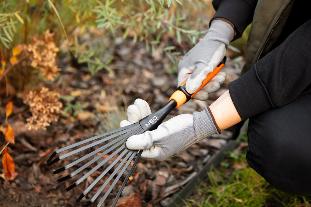 NEO 95-075 LOMBSEPRŰ, 260X185MM, ACÉL, NEO CLICK SYSTEM. Egy praktikus mini lombseprű, amely a NEO Click System-hez tartozik - egy olyan kerti szerszámsorozathoz, amely cserélhető nyéllel rendelkezik, így helytakarékos a tároláshoz, gazdaságos és többcélú. A 0,9 mm vastag tüskékkel felszerelt kis lombseprű talaj-előkészítéshez, gyepápoláshoz vagy gyomtalanításhoz ajánlott. A 330 mm-es hossz és a 125 mm-es munkaszélesség megkönnyíti a feladatokat. A szénacélból való gyártás és a PP rögzítés hozzájárul a több évszakos tartóssághoz. A NEO TOOLS kis lombseprű olyan termék, amelyek minden kertben hasznosnak bizonyul.