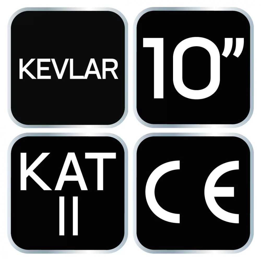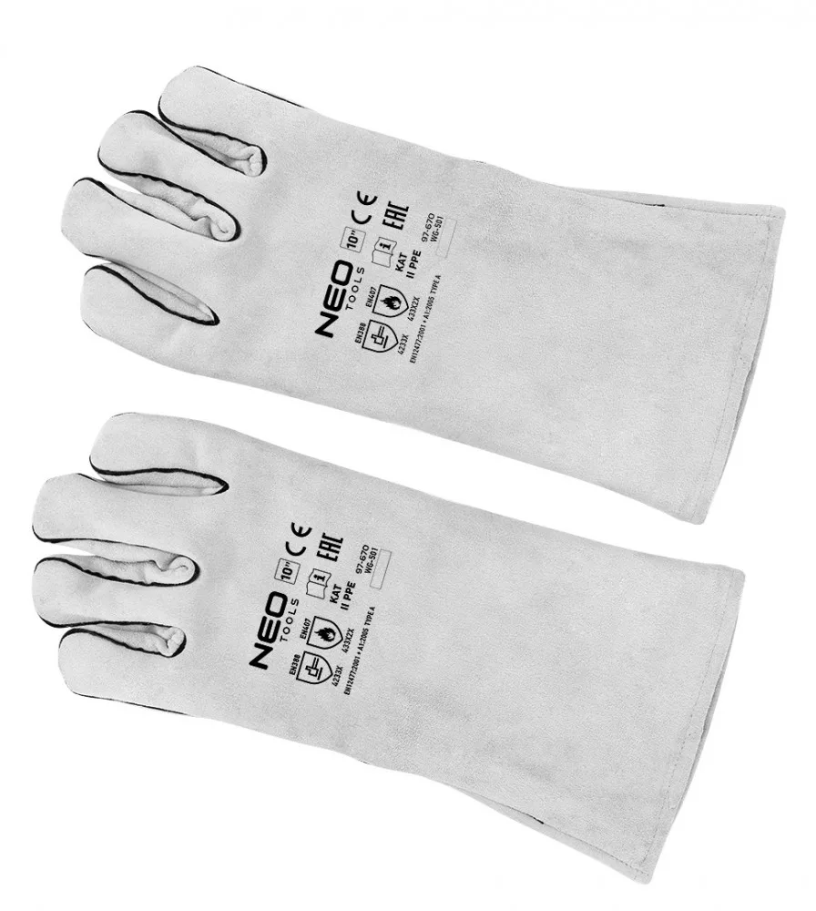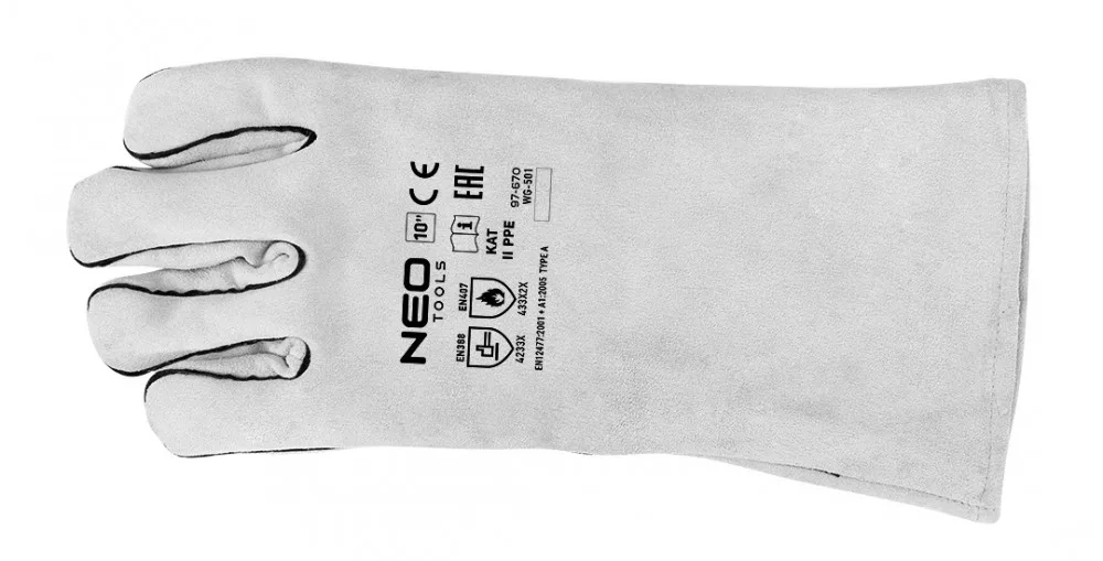 Ez a NEO kesztyű kifejezetten hegesztési munkákhoz készült, a tartós marhabőr és a kevlárszál megerősítés pedig extra védelmet nyújt. Az EN 388 és EN 407 szabványok szerinti minősítések további garanciát nyújtanak a termék minőségére és a biztonságos használatra. A termék jellemzői: Anyag: Tartós marhabőr kevlárszállal megerősítve, Megfelelőség: CE tanúsítvány, EN 388: 4332X és EN 407: 442X4X, Méret: 10 (10-es méretben kapható), Kialakítás: Hosszabb kialakítású, így nagyobb területen védi a kezet, Hegesztési munkákhoz készült MAG-módszerrel, Megfelel az EN 21420:2020 és EN 12477 szabványoknak, Védelmi kategória: II. kategória