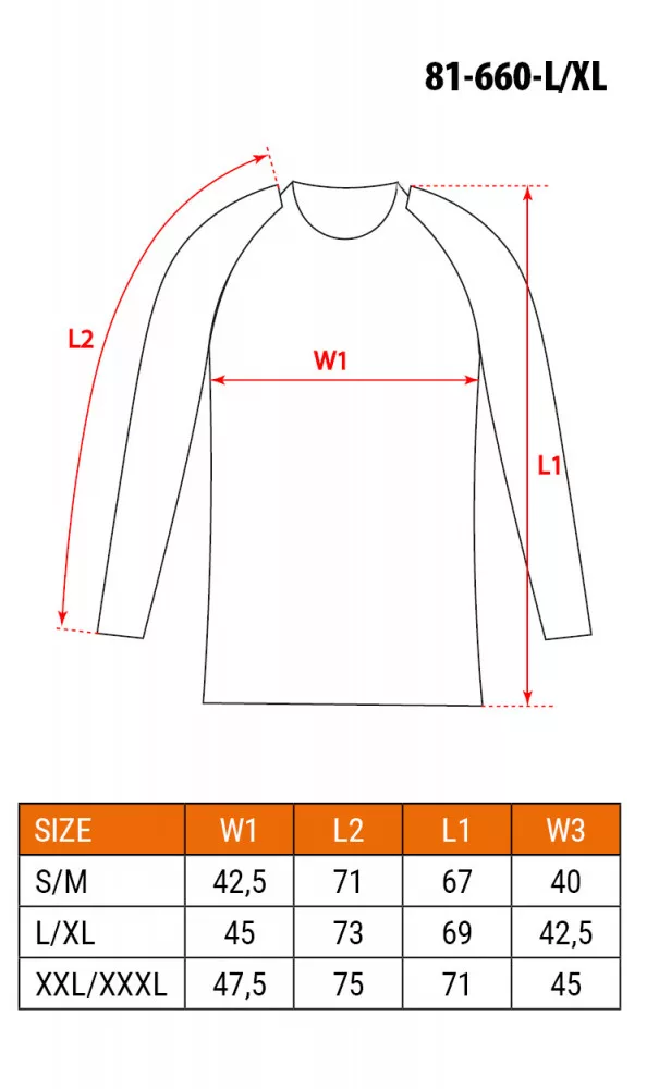 Thermo aláöltözet, felső, hosszú ujjú, méret: L/XL, CE, termoaktív szövet, összetétele: 63% poliamid 32% poliészter, 5% elasztán, varrás nélküli, nedvességet elvezető szerkezetű szövet, speciális szerkezet az izzadásnak fokozottan kitett helyeken